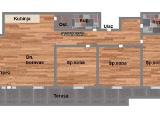 Četvorosoban stan u zgradi novogradnje na prvom spratu ukupne površine 119 m2. Sastoji se od hodnika i dnevnog boravka sa kuhinjom i trpezarijom iz koje se može pristupiti terasi dva kupatila i tri spavaće sobe . Završna obrada poda je od keramike i parketa. Stolarija je PVC a grejanje....