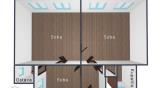 Po ulasku u stan nalazi se hodnik sa plakarom koji je otvoren ka dnevnom boravku. Dnevni borak sa trpezarijom je veoma svetao i prostran i izlazi na terasu. Na prvoj etaži nalazi se dnevni boravak, kuhinja, kupatilo i terasa. .