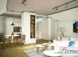 Nalazi se na visokom prizemlju zgrade, u mirnom gradskom naselju bez buke. Sastoji se iz dnevno-trpezarijskog prostora, spavaće sobe, kupatila i velike terase. Kompletno je opremljen lepim komadima nameštaja i neophodnim tehničkim uređajima i aparatima. Klimatizovan je a grejanje....