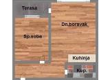 Prodaje se jednoiposoban stan - 43.30 m 2 na drugom spratu (isti stan je dostupan i na prvom spratu) .