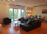 Za izdavanje - luksuzan dupleks sa tri spavaće sobe. Sobe na gornjem nivou imaju garderobere i kupatila, a u jednom kupatilu je sauna. Grejanje i hlađenje fan-coil toplotnim pumpama. Garažna mesta po potrebi uz doplatu od 150 EUR po mestu. .