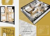 Stan u novogradnji površine 42.21m2 koji se sastoji od dnevnog boravka sa kuhinjom i trpezarijom, kupatla, spavaće sobe i terase.Zgrada je građena od termoblokova najviših izolacijskih svojstava+fasadna izolacija.Pregradni zidovi će biti izgrađeni od opeke. Tarket podne obloge u sobama....
